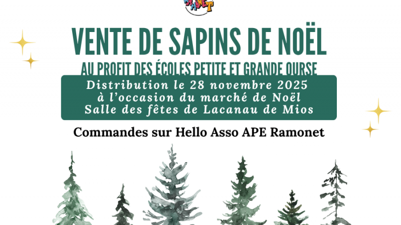 L’APE Ramonet vous propose une vente de sapins de Noël de la région ! 🎄❄️☃️ Vous pouvez faire la commande dès maintenant et jusqu’au 14 novembre. Votre sapin vous sera livré le 28 novembre à l’occasion du Marché de Noël organisé par l’APE. Retrouvez toutes les infos ici : Lien vers les commandes sur Hello asso ici : COMMANDE SAPINS [...]