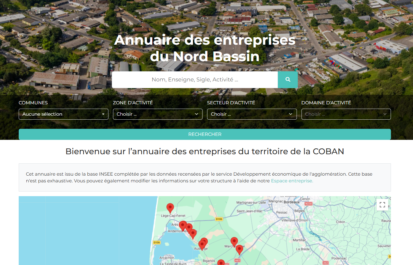 Cet annuaire en ligne, également accessible via le site de la COBAN (rubrique Développement économique / page Parcs et Zones d’Activités)