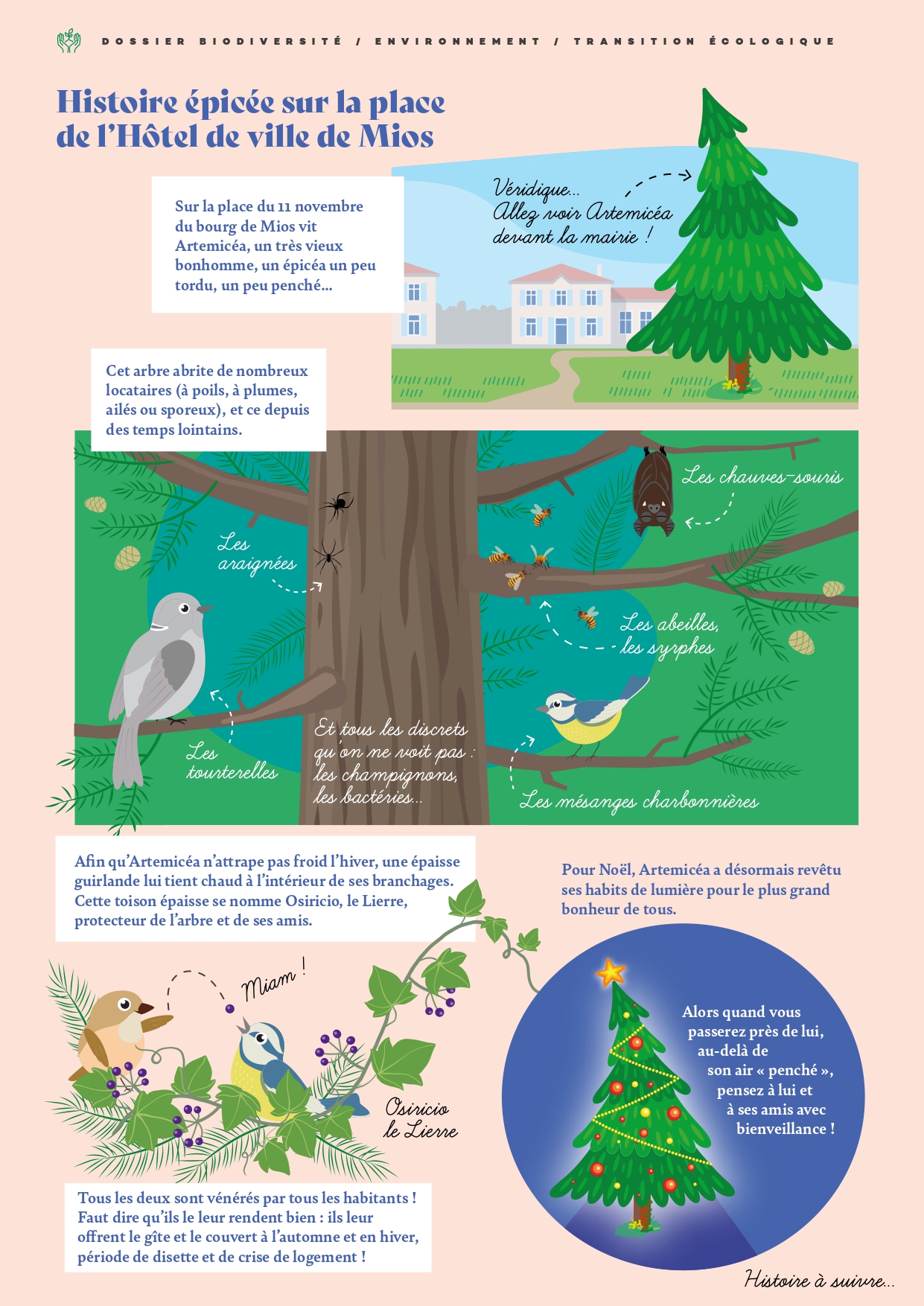 Vous l’avez vu, vous l’avez aimé, vous l’avez admiré chaque Noël : Artémicéa, le grand sapin devant la mairie, fait partie intégrante du patrimoine de Mios.