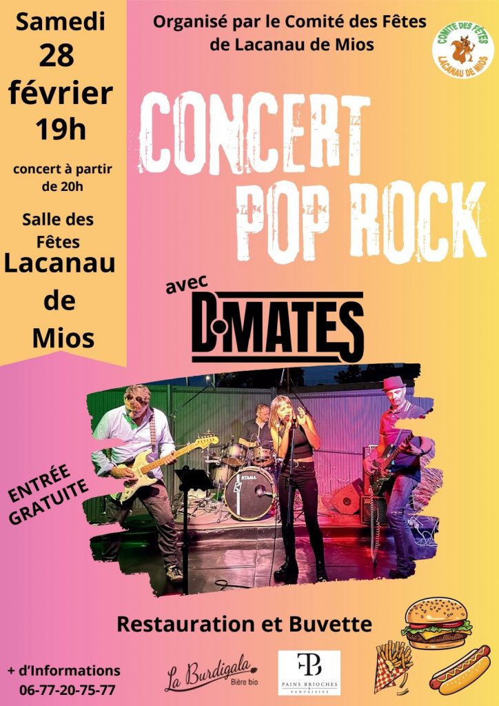🎶🎸 Le Comité des fêtes de Lacanau de Mios vous propose une nouvelle soirée festive Samedi 28 février avec :