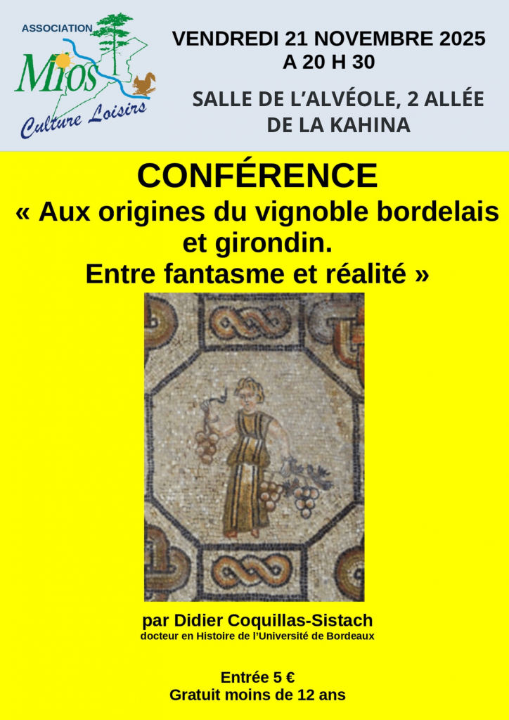 Le vendredi 21 novembre, l’association Mios Culture Loisirs organise une conférence sur les origines du vignoble bordelais et girondin.