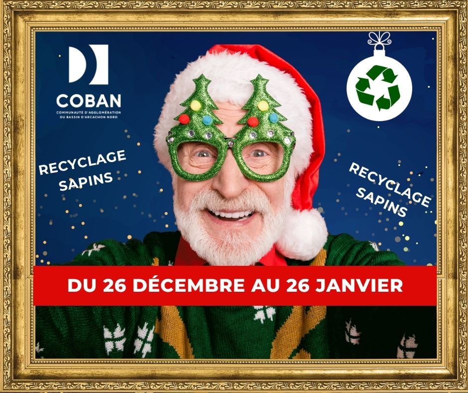 Du 26 décembre au 26 janvier 2026 : opération de recyclage de sapins est organisée sur le Nord Bassin par la COBAN ! 😉