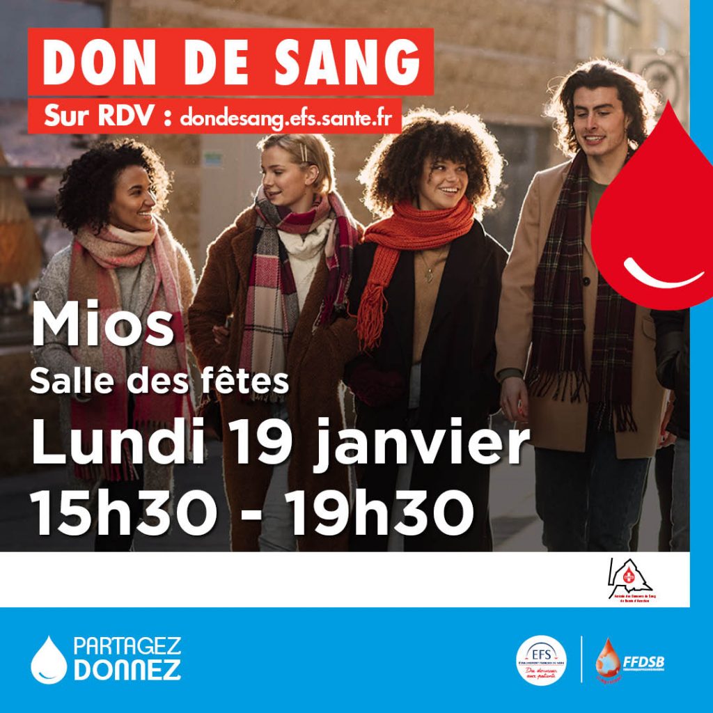 LUNDI 19 JANVIER – de 15h30 à 19h30 – Salle des fêtes de Mios