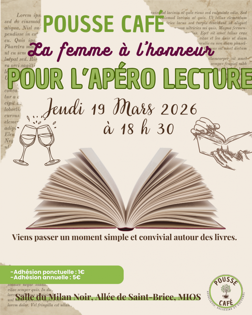 L’Apéro Lecture avec la Pousse Café est de retour sur le thème de LA FEMME ce jeudi 19 mars !