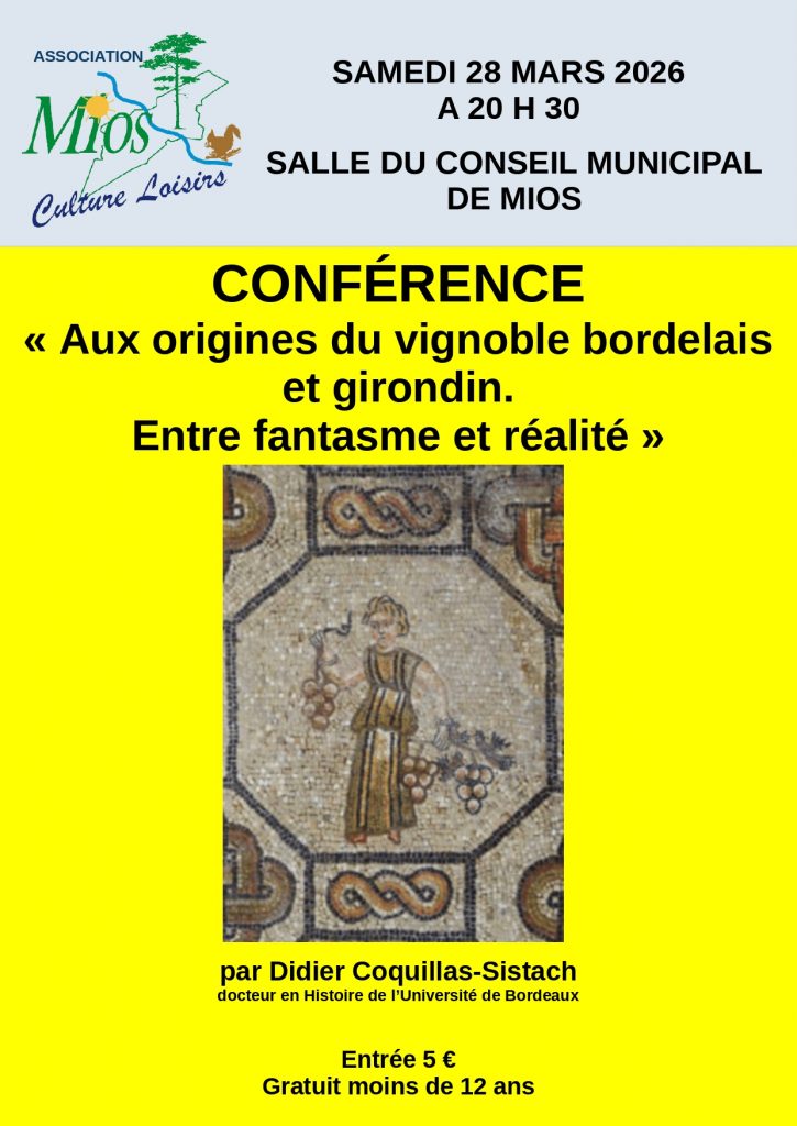 Le Samedi 28 mars janvier à 20h30, l’association Mios Culture Loisirs organise une conférence sur les