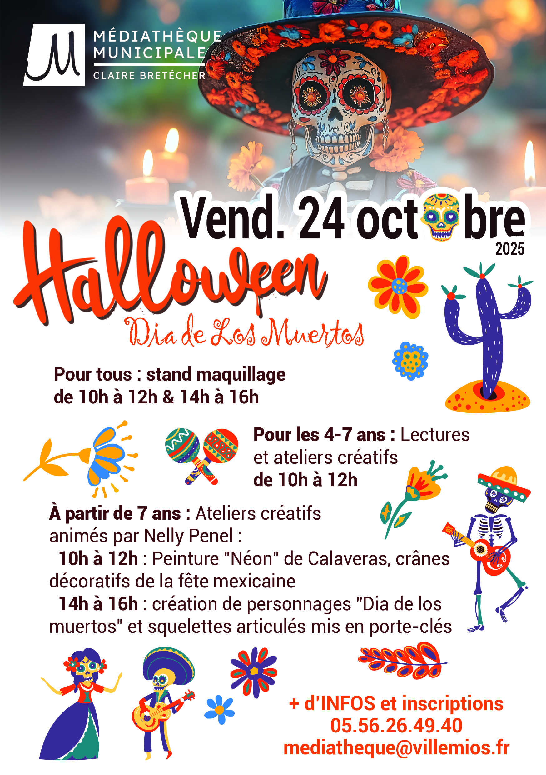 🎃 Une jolie tradition venue d’Amérique du Sud à découvrir à l’occasion d’un Halloween frissonnant et coloré, Vendredi 24 octobre à la Médiathèque ! 🧙♀️