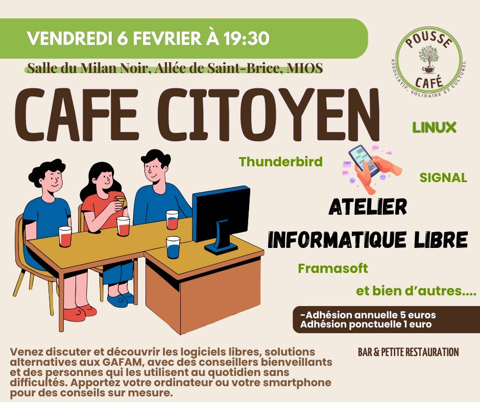 📍 POUSSE CAFE CITOYEN – Spécial logiciels libres – Vendredi 6 février