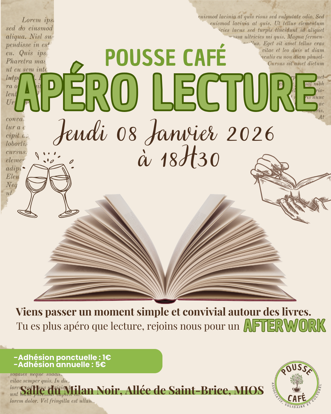 Venez papoter en espagnol, anglais ou portugais autour d’un verre. Jeux, échanges et bonne humeur. Tous niveaux bienvenus. Apéro et grignotes en vente sur place dans l’ambiance conviviale du Pousse Café.