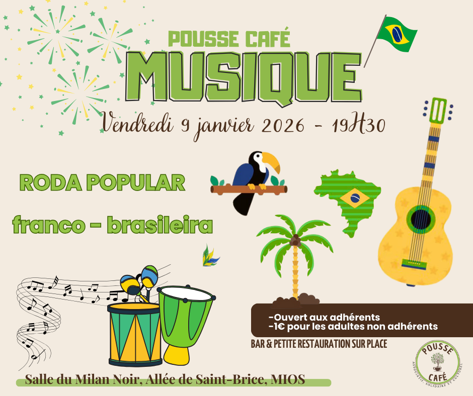 - Grignotes apéro et petite restauration en vente sur place. Pour cette soirée spécial Brésil, l’équipe cuisine vous a concocté un menu aux couleur du pays : toasts variés à l’avocat, pao de queijo, …